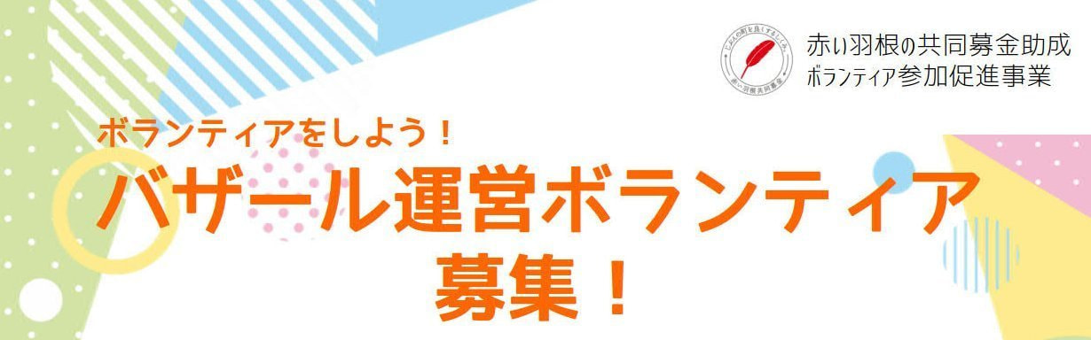 このバザールはボランティア活動を多くの人に知ってもらうために開催します。ボランティアに関心を持ち、誰かのために活動したいと考える仲間と一緒に、福祉バザールを運営しませんか。人とのふれあいが見つめ直される今、思いやりの心をつなげましょう♪