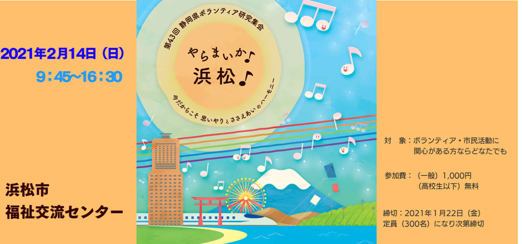 「第43回静岡県ボランティア研究集会」開催延期お知らせ
