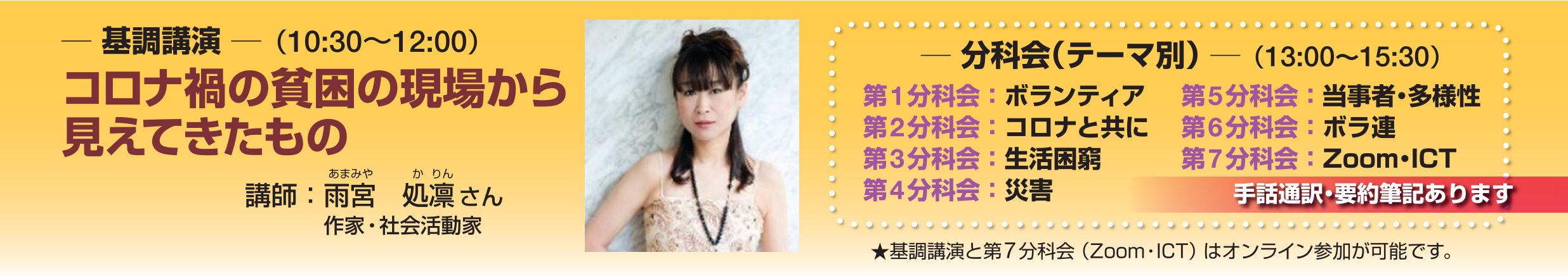 ・基調講演と第7分科会(Zoom・ICT)はオンライン参加が可能です。