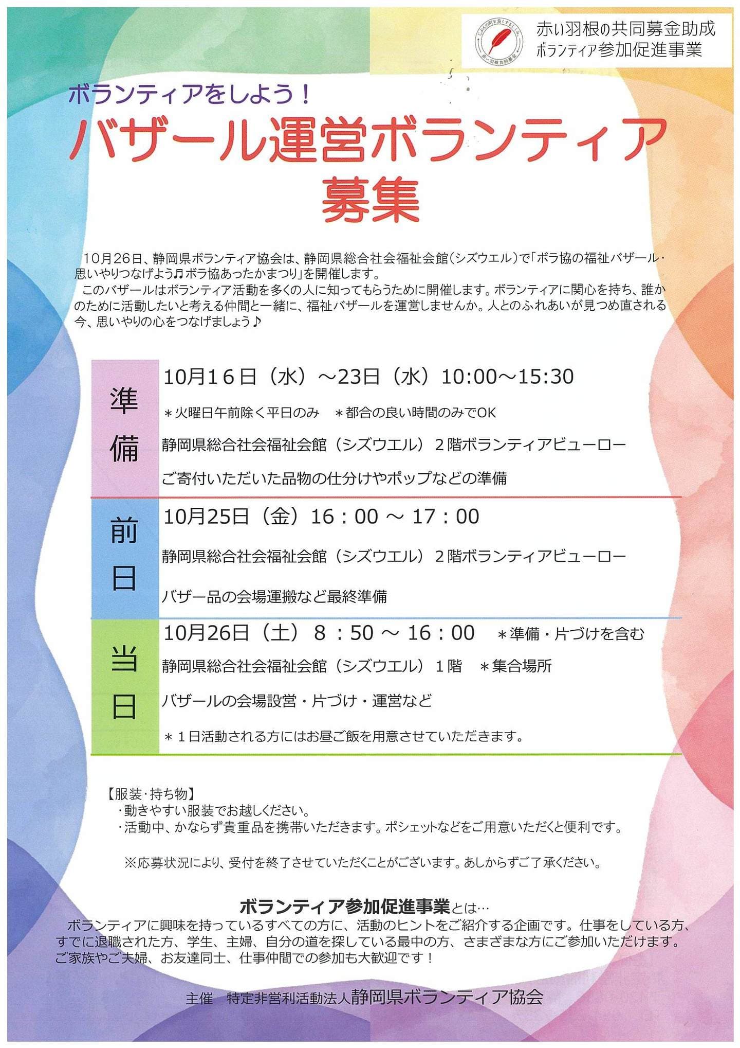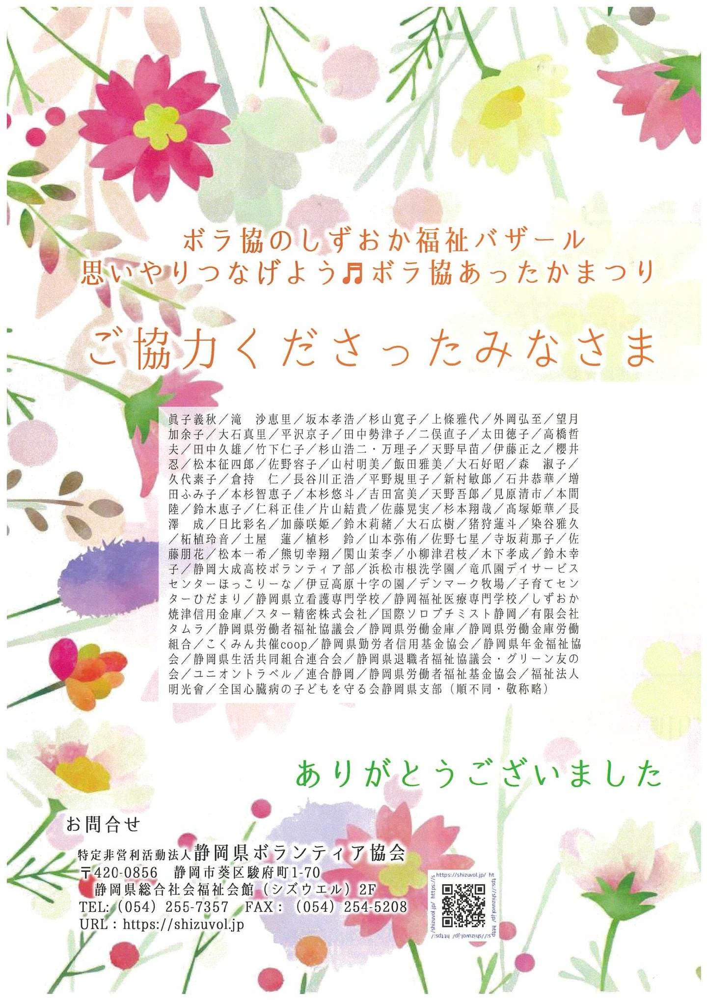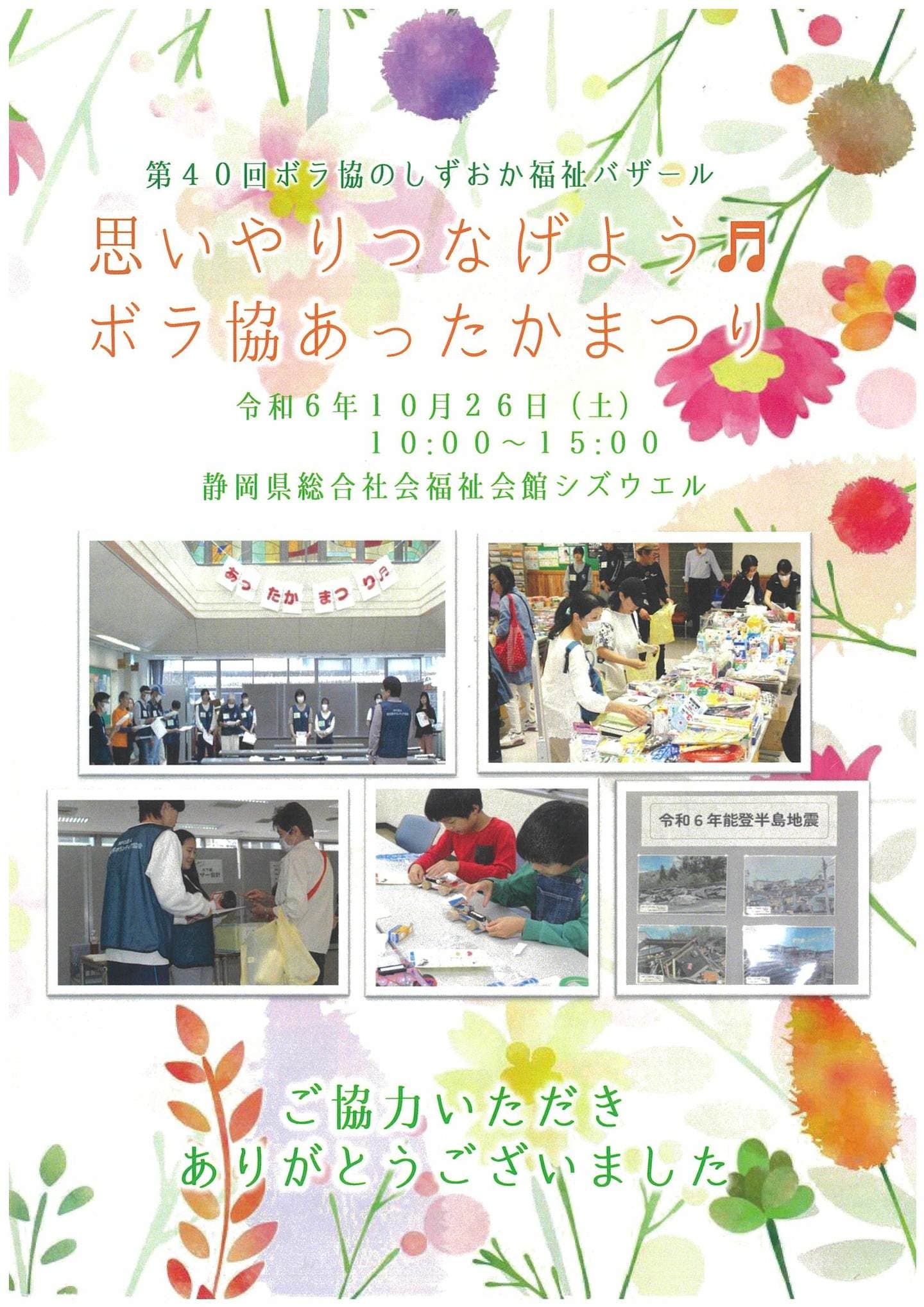 「しずおか福祉バザール」は、ボランティアや市民活動を知っていただくために毎年実施をし、今年で40回目を迎えることができました。皆さまの温かいご支援ご協力に感謝申し上げます。