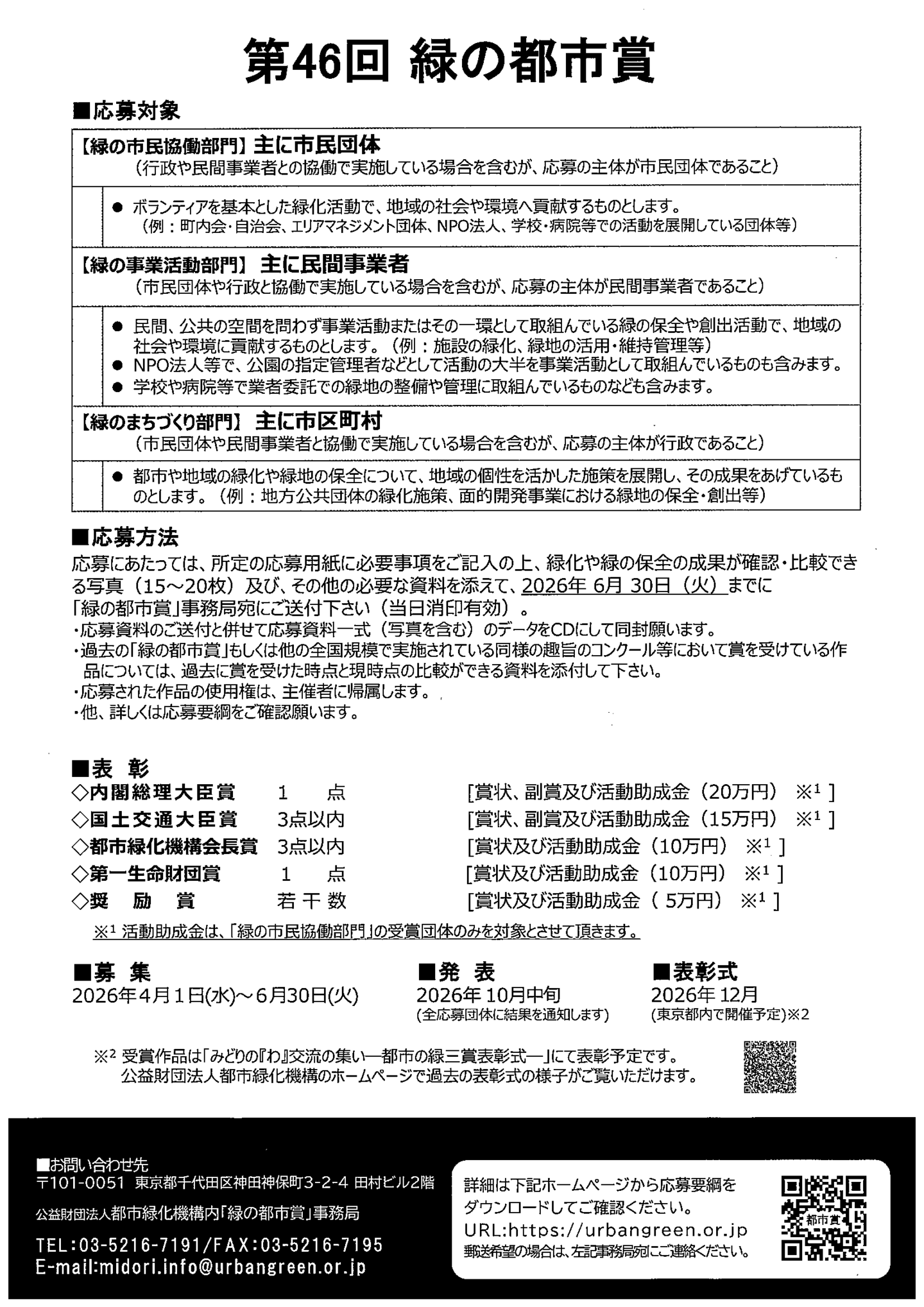 (公財)都市緑化機構「緑の環境プラン大賞」事務局