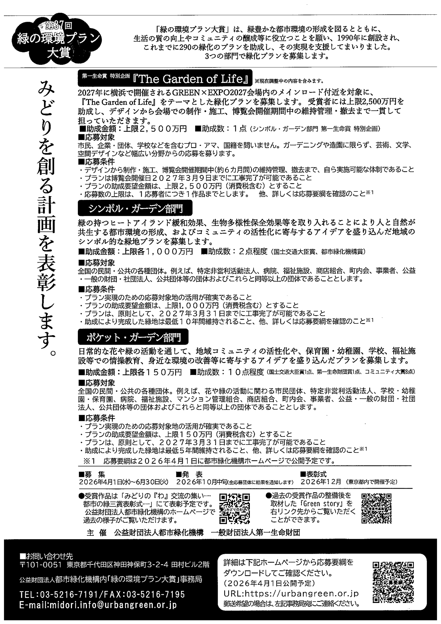 主催:(公財)都市緑化機構 (一財)第一生命財団
