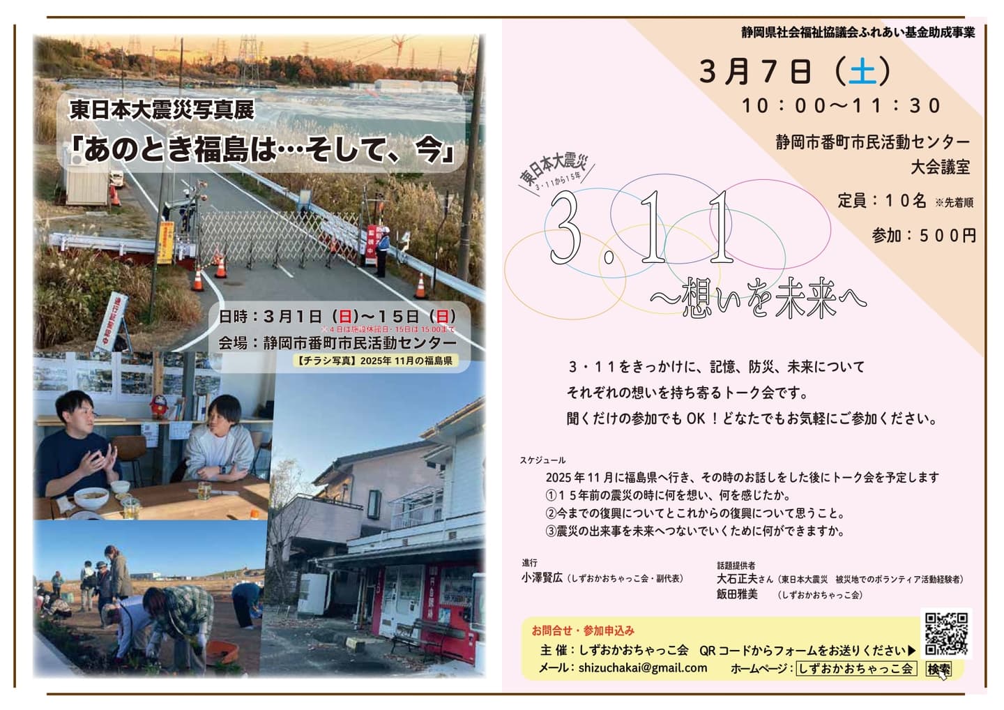 日程:3/7(土) 10:00~11:30 静岡市番町市民活動センター 大会議室