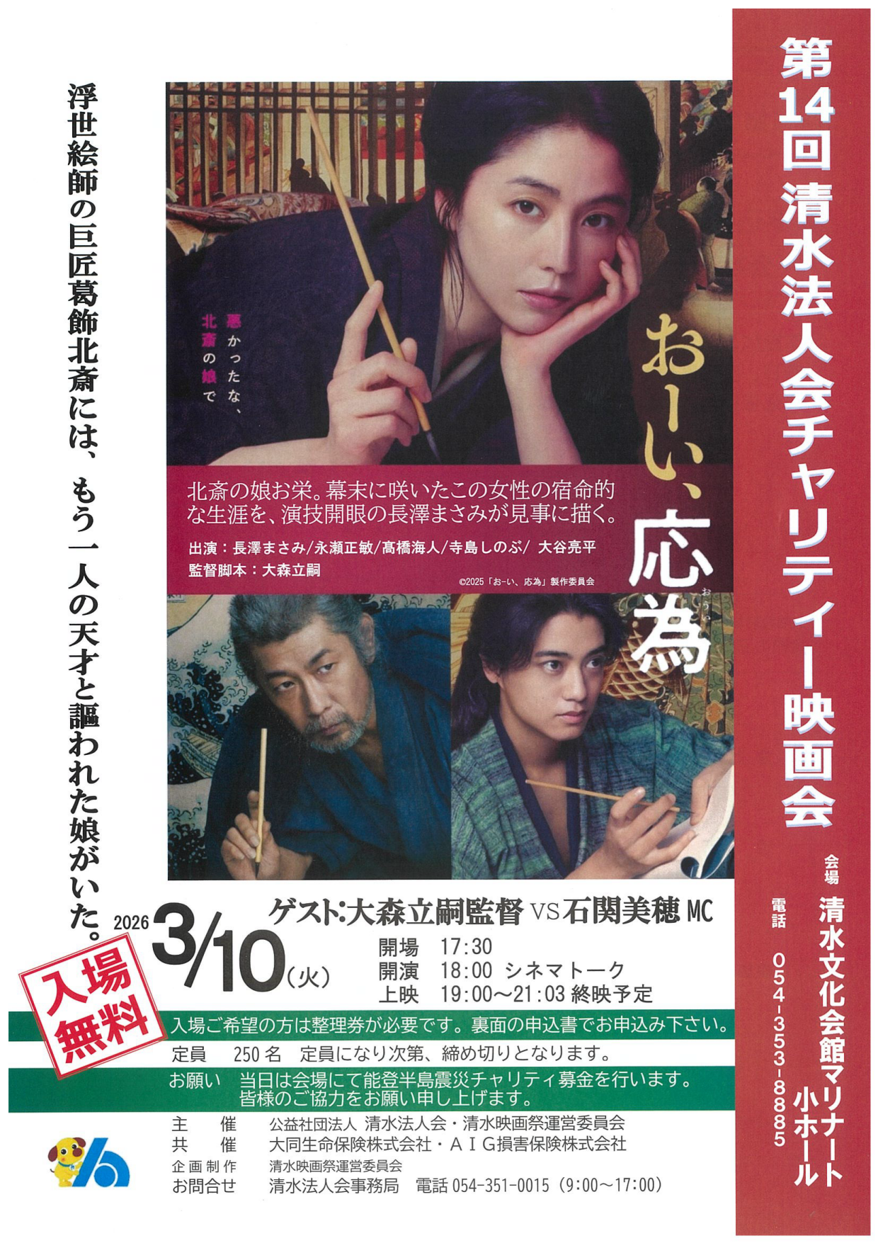 日程:3/10(火) 18:00~シネマトーク 19:00~上映 清水文化会館マリナート小ホール