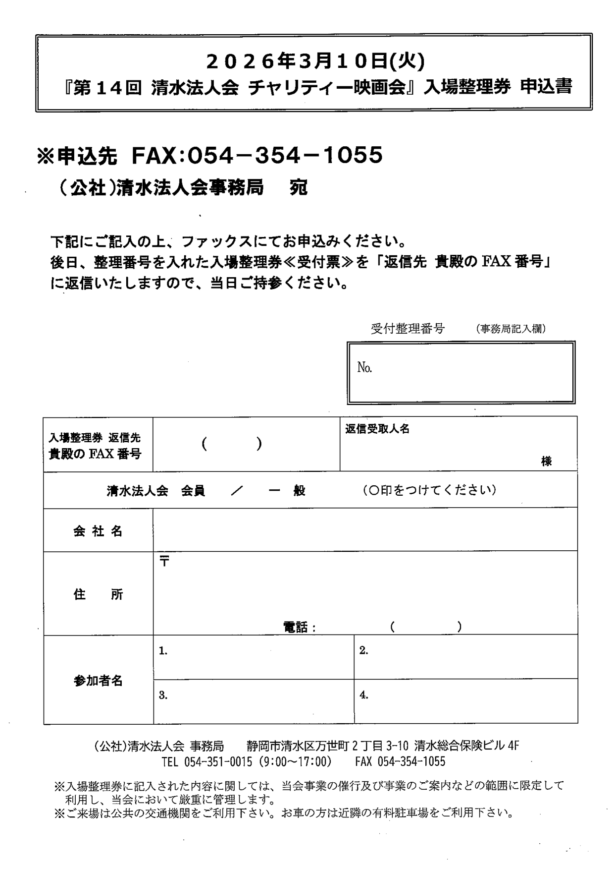 入場ご希望の方は整理券が必要です。申込書でお申込み下さい。定員になり次第、締め切りとなります。