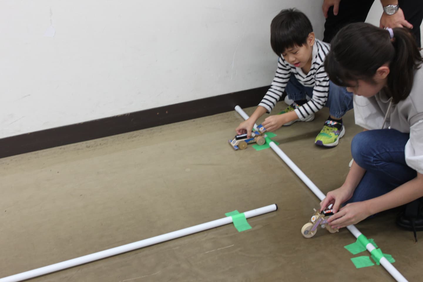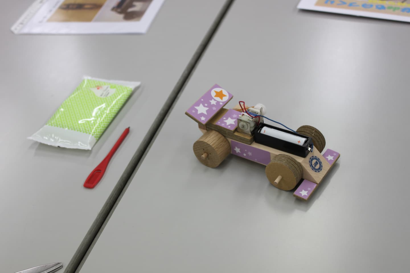 ボンドで貼り合わせて作る木の車は、なんと、モーターで走ります!