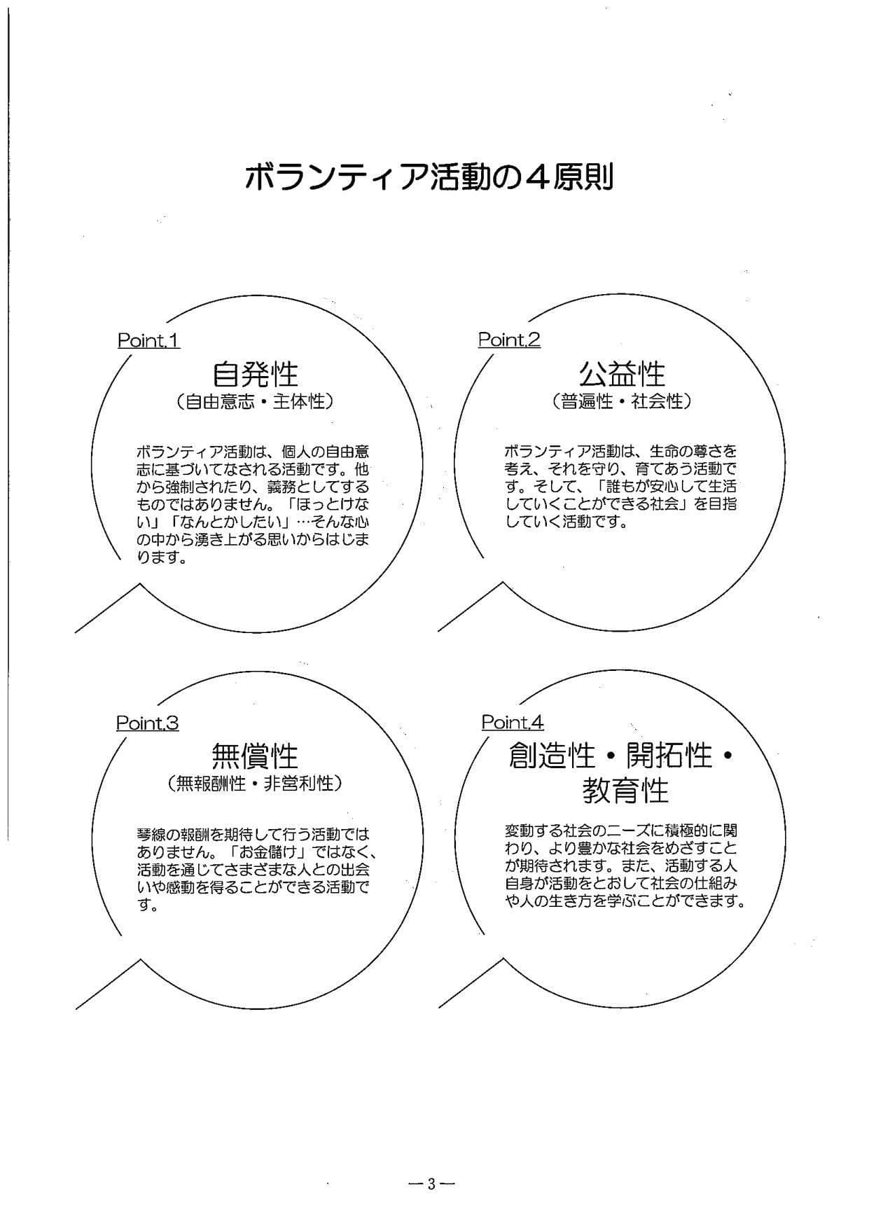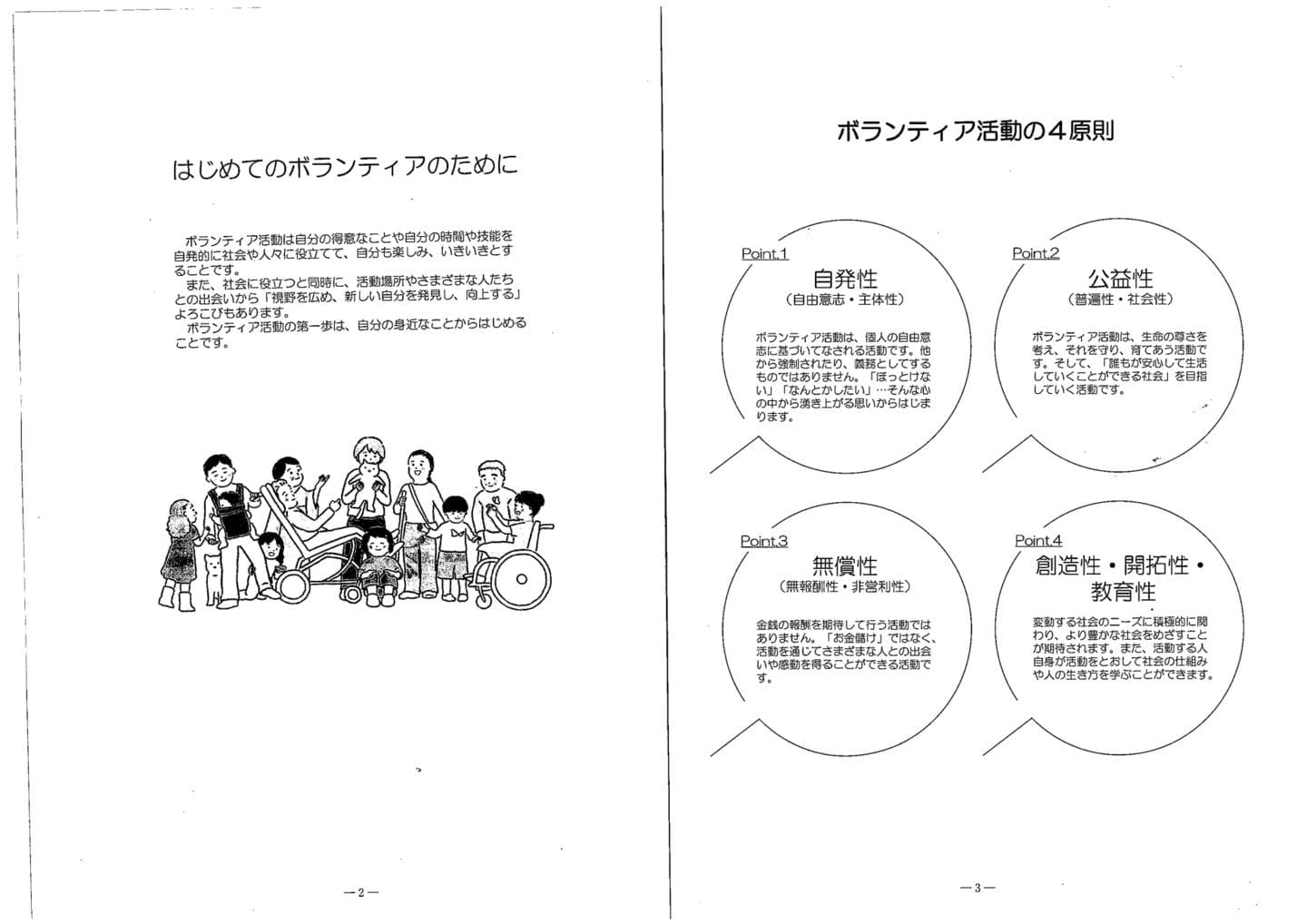 ボランティアとは、「自発的に、自由に行動する人」という意味で一人ひとりの人間の尊重や、自由な意思を大事にする理念が込められています。