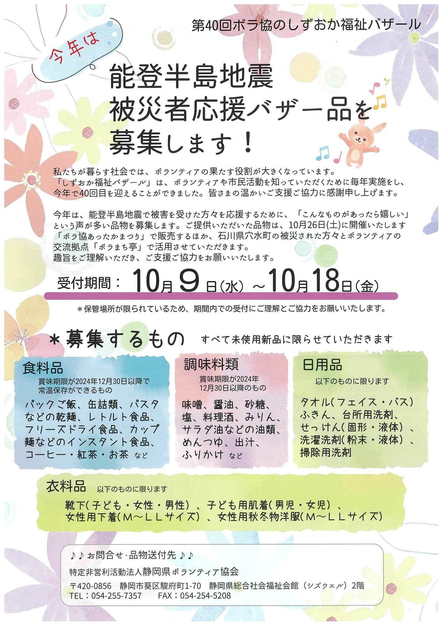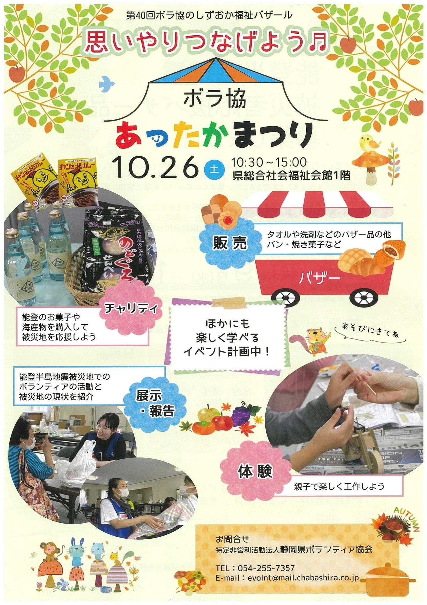 「しずおか福祉バザール」は、ボランティアや市民活動を知っていただくために毎年実施をし、今年で40回目を迎えることができました。皆さまの温かいご支援ご協力に感謝申し上げます。