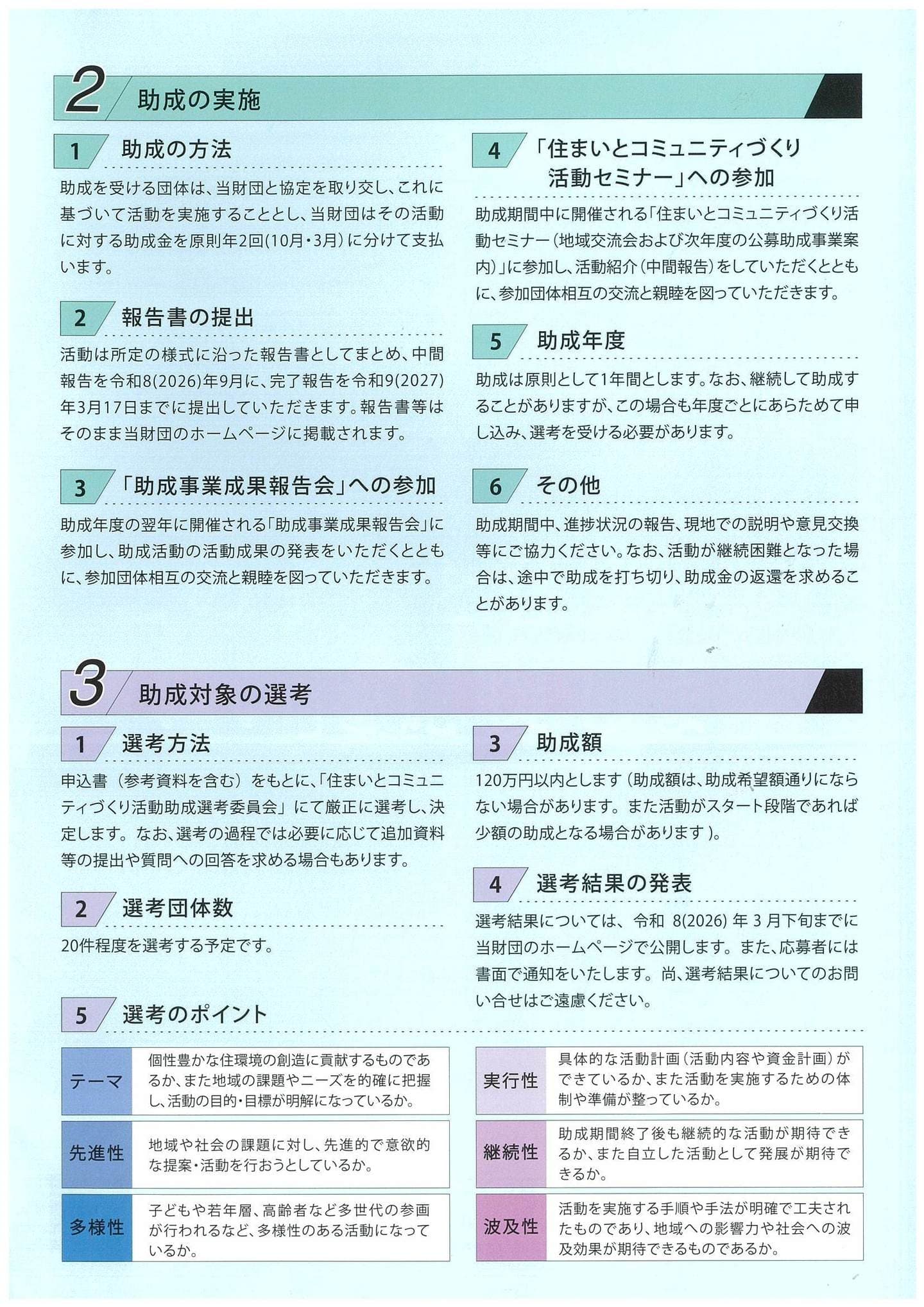 助成期間終了まで、年1回実施の助成報告会にて活動成果を報告すること