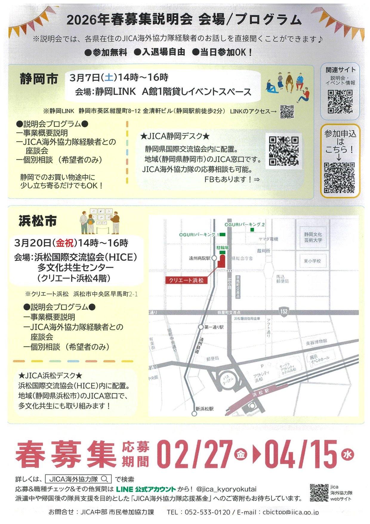 日程:3/7(土) 14:00~16:00 静岡LINK 3/20(金)浜松国際交流会多文化共生センター