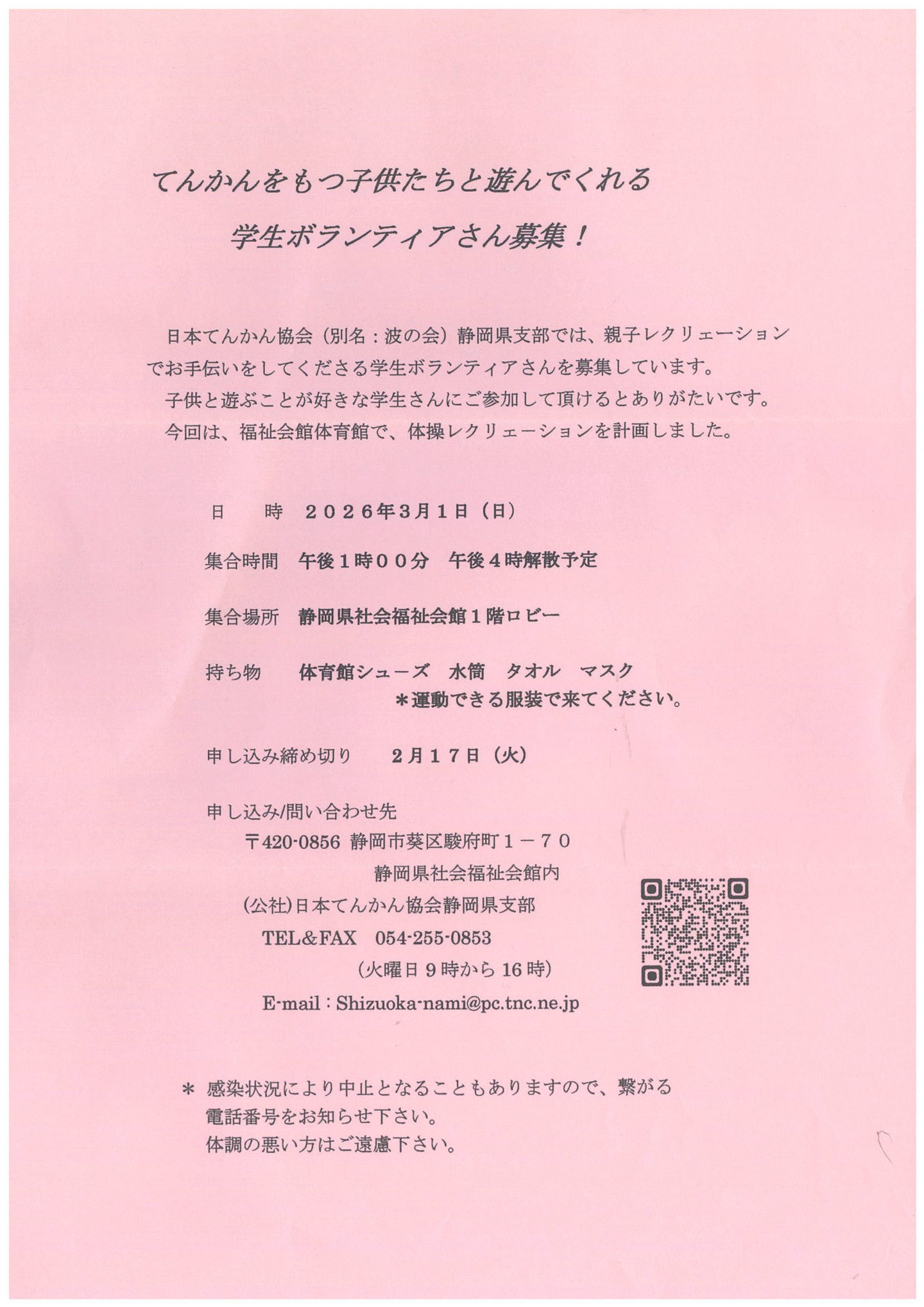 | 事業名 | てんかんをもつ子どもたちと遊んでくれる学生ボランティアさん募集