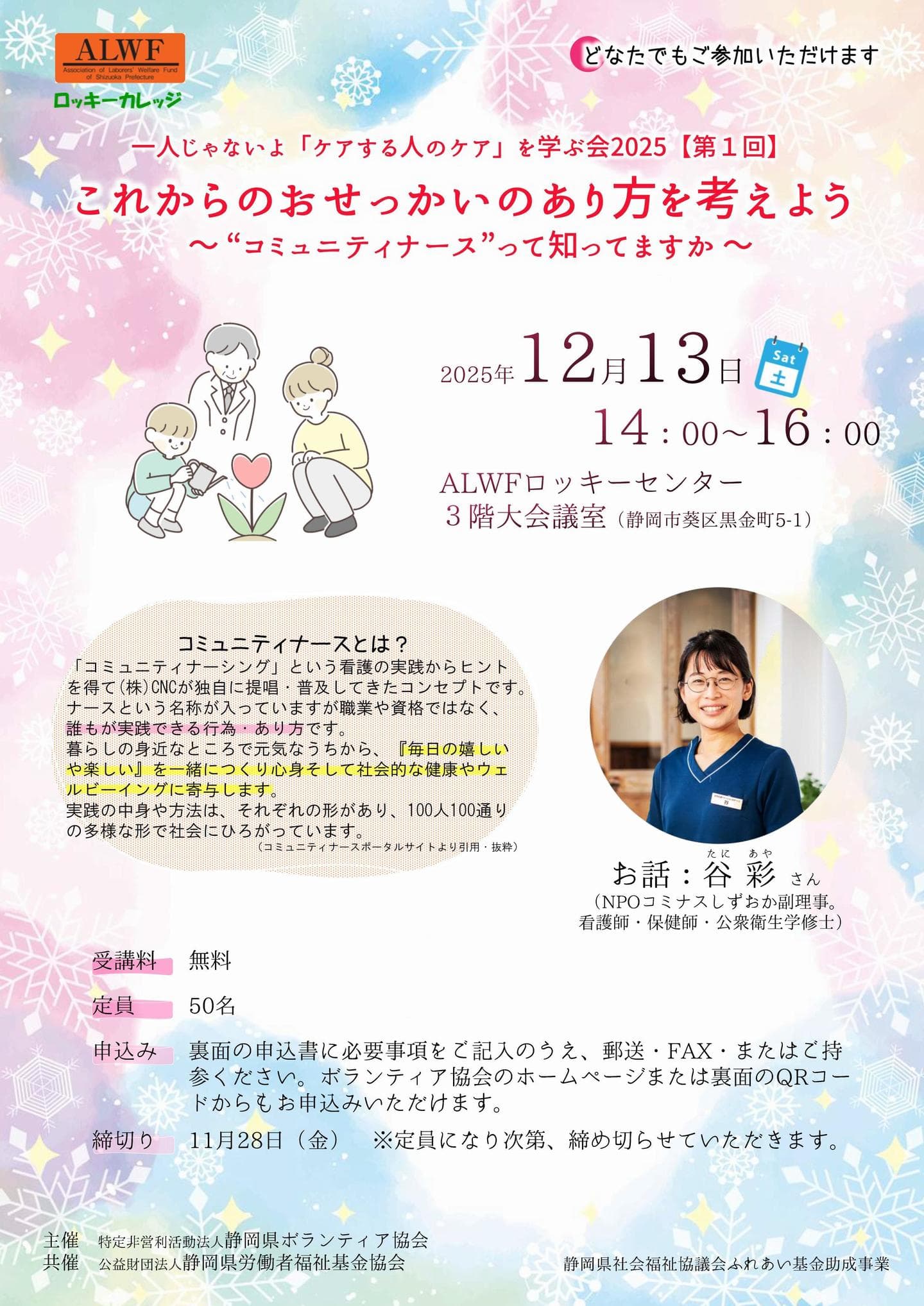 受講料:無料(先着50名 事前申込制)