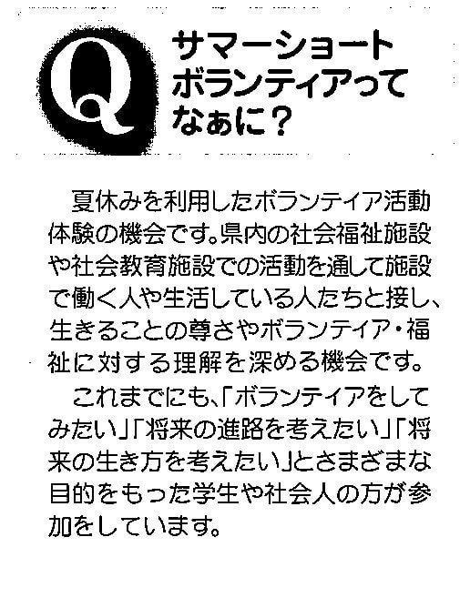 サマーショートボランティア活動計画(SSV)は、夏休みを利用したボランティア活動体験プログラムです。