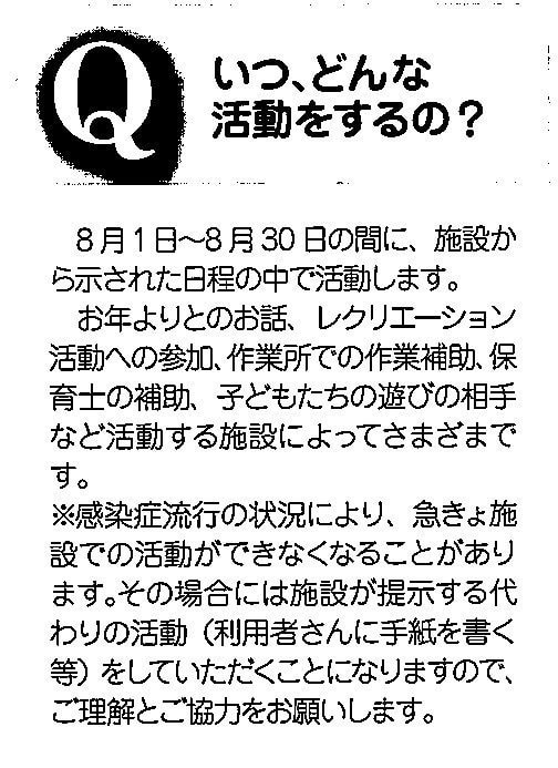 ※ わからない点は、ボランティア協会にお問合せください。施設へのお問合せはご遠慮ください。