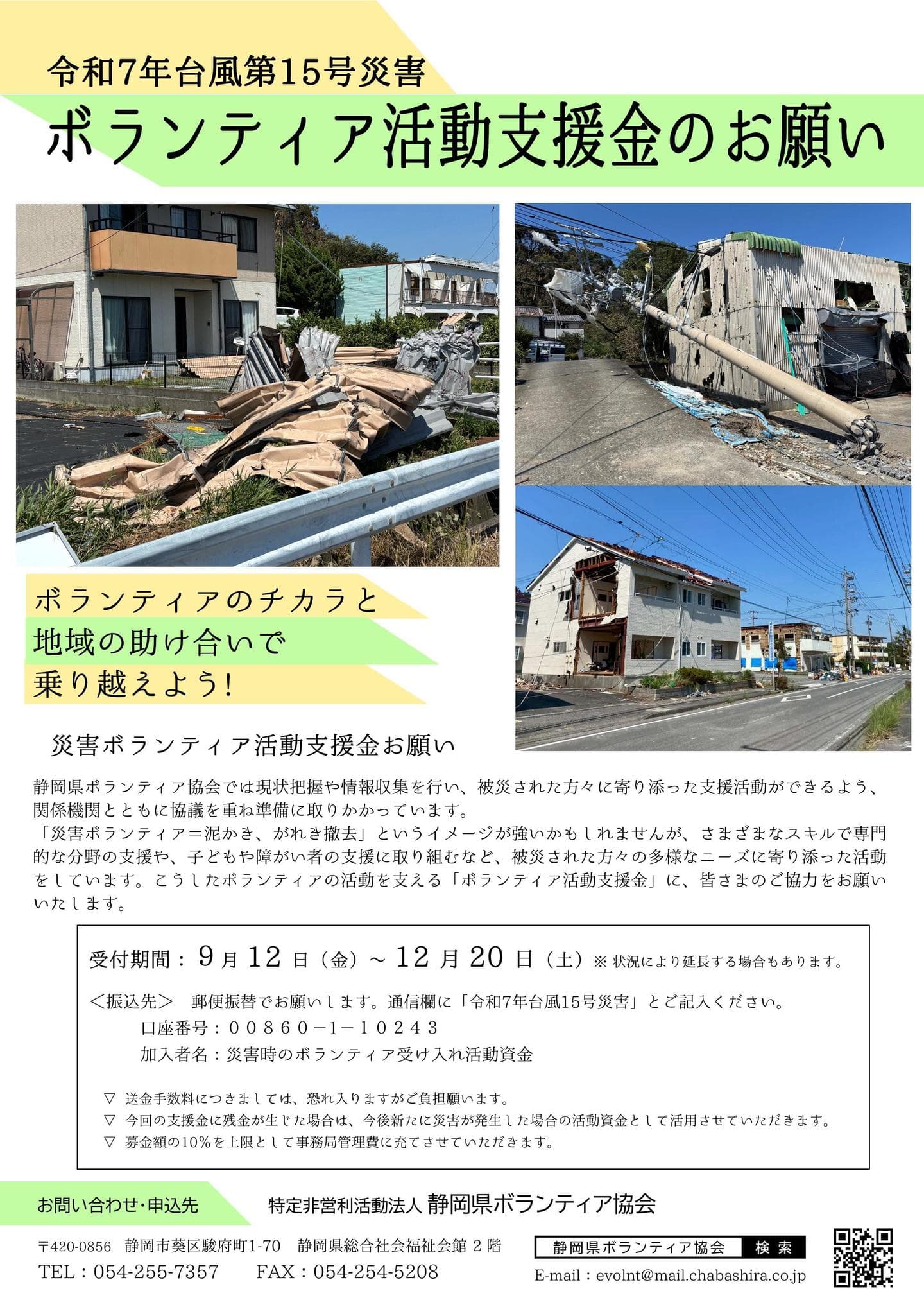 静岡県ボランティア協会では現状把握や情報収集を行い、被災された方々に寄り添った支援活動ができるよう、関係機関とともに協議を重ね準備に取りかかっています。