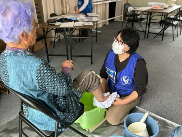 本協会では、認定NPO法人レスキューストックヤード(本拠地:名古屋市)と連携し、石川県穴水町の応急仮設住宅での足湯ボランティア活動を実施しています。